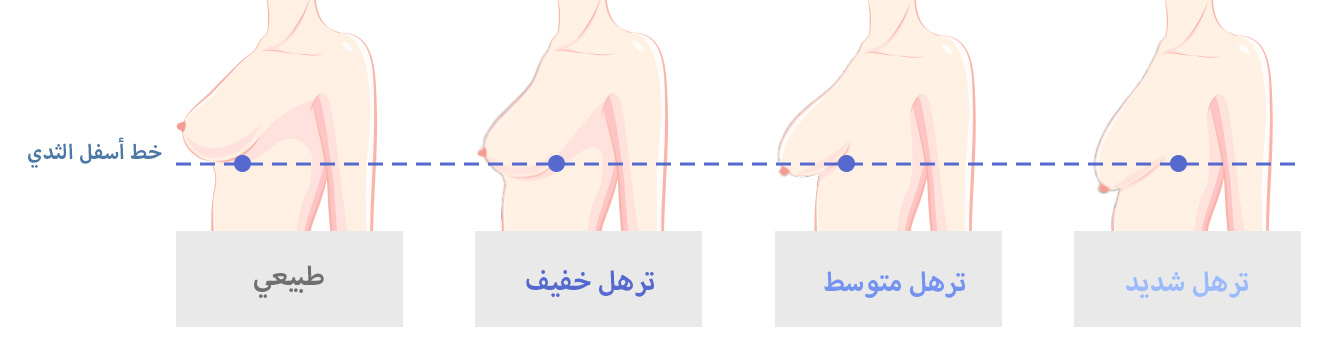 تعتبر ترهلات الثدي، أو تدلي الثدي، من المخاوف الشائعة لدى النساء اللاتي خضعن للحمل والرضاعة الطبيعية أو كنتيجة طبيعية للشيخوخة. يتم تحديد مستوى ترهل الثدي من خلال موضع الحلمة بالنسبة للطية تحت الثدي، وهي الخط أسفل الثدي