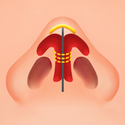 يتم جمع غضروف الجناحين الأنفيين معًا وتُطبق تقنيات خياطة متنوعة لتضييق طرف الأنف. على الرغم من أن مادة الخياطة ستذوب مع الوقت، إلا أن الغضروف سيبقى في شكله
