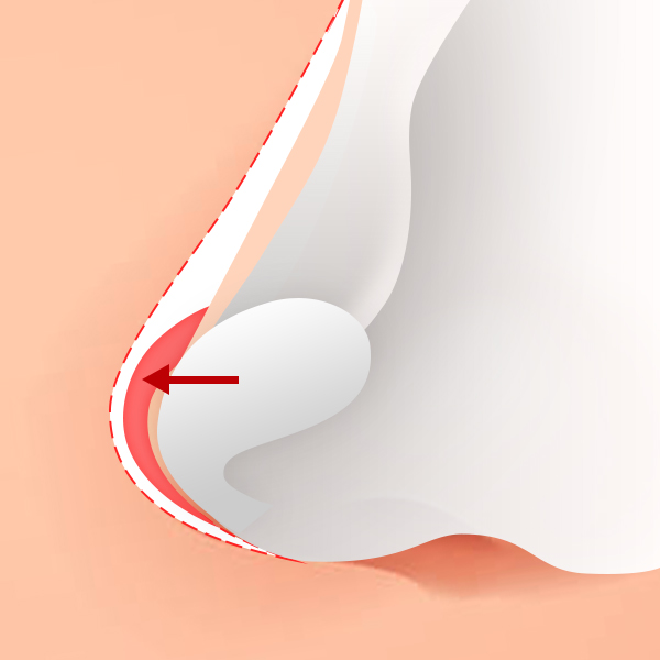 يتم عمل شق لإضافة الغضروف لتشكيل طرف الأنف المرغوب فيه