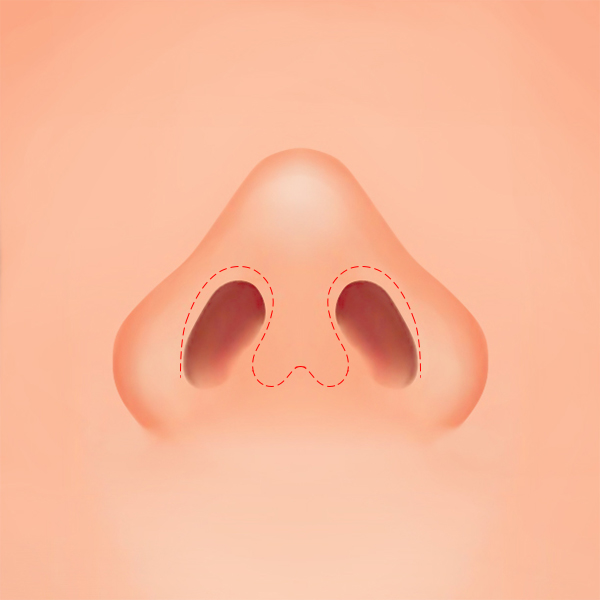 يتم إدخال زرعة اصطناعي في جسر الأنف لتحقيق تناسق مثالي بين طرف الأنف وجسر الأنف